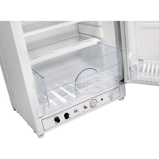 Alimentation double: propane (principalement) et 110 V. Un grand bac à légumes. Tablettes en verre amovibles. Portes réversibles. Thermostat. Indicateur de flamme. Commandes situées à l'avant. Intérieur moderne doté de 4 tablettes en verre et d'un bac à légumes. Dimensions. (H. x l. x P.) : 64.5 po x 23.5 po x 25.25 po. Spécifications.