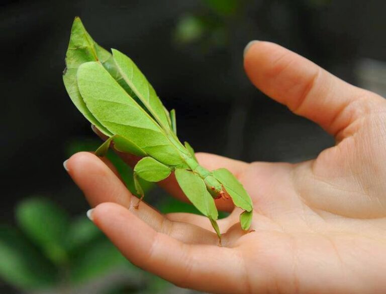 体色や葉脈の細かなライン、さらには枯葉の茶色い部分まで完璧に再現されており、間近で見ても葉っぱと見分けがつきません。 この擬態能力のおかげで、食事中でも天敵に狙われる危険性がないのです。