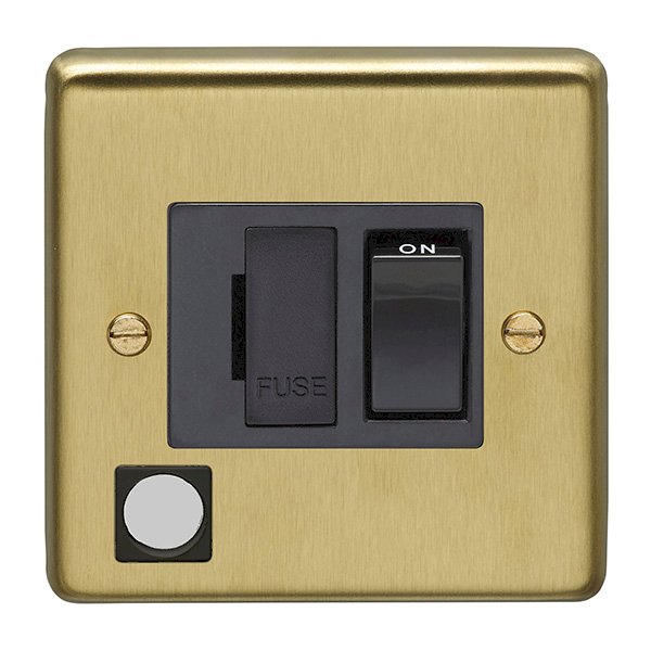 Eurolite Stepped Edge Polished Brass 13amp Switched Fuse Spur Flex Outlet with Black Insert at